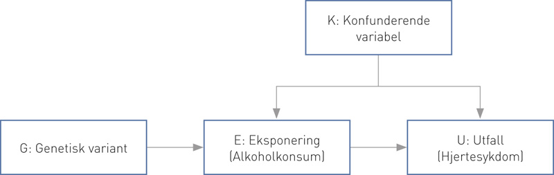 I en slik analyse slipper vi i teorien problemet med tradisjonelle konfunderende variabler – sosial status kan påvirke både våre drikkevaner og vår risiko for kardiovaskulær sykdom, men vi antar at genvarianten for alkoholdehydrogenase nedarves uavhengig av sosial status. I tillegg unngår vi problemet med invers kausalitet, helseplager kan påvirke alkoholkonsumet vårt, men ikke hvilke gener vi er født med. Denne enkle protokollen er grunnlaget for mendelsk randomisering. Poenget er også illustrert med en rettet asyklisk graf i figur 1. Den konfunderende variabelen blir uproblematisk når vi ser på genet for alkoholdehydrogenase i stedet for alkoholinntak per se.