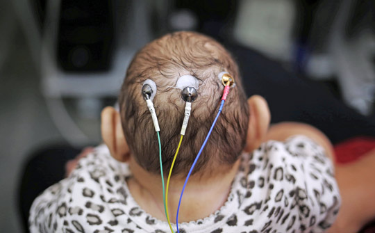 Et spedbarn med mikrokefali blir undersøkt ved et sykehus i São Paulo, Brasil. Foto: Reuters/NTB Scanpix