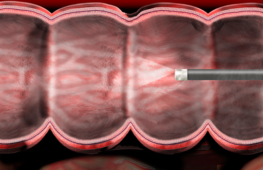 Koloskopiscreening: Screening for kolorektal kreft med bøyelig tarmkikkert etter oral tømming av tarmen med tømmingsvæske. Koloskopiscreening gjøres i USA og noen land i Europa.