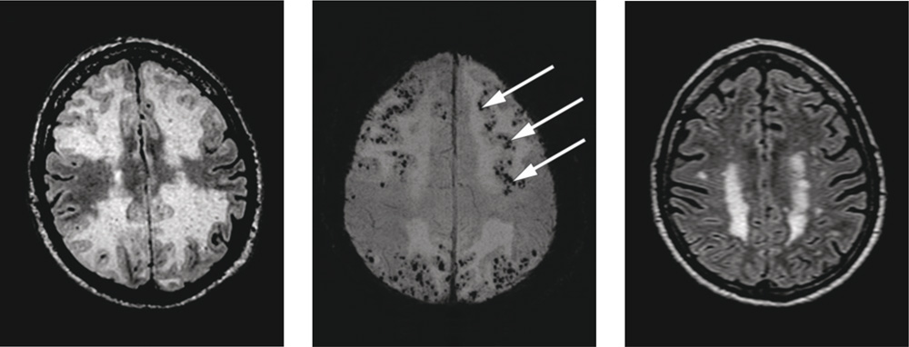 Cerebral amyloid angiopati er en sykdom med avleiring av β-amyloid i veggen til små og mellomstore cerebrale arterier og en viktig årsak til hjerneblødning hos eldre. Hyppigheten øker med økende alder. En liten andel pasienter med sykdommen har cerebral amyloid angiopati av inflammatorisk type, med inflammatoriske forandringer i karveggen eller perivaskulært (1, 2) . Tilstanden kan gi et subakutt eller akutt klinisk bilde med kognitiv svikt, nevropsykiatriske symptomer, kramper og hodepine. Inflammasjonen og ødemet går tilbake med immunsuppresjonsbehandling, mens mikroblødningene består (1, 2) . Siden mikroblødningene er vanskelig å oppdage med standard MR-sekvenser, bør bildesekvenser som er følsomme for blodprodukter inkluderes i utredningen av kognitiv svikt hos eldre.