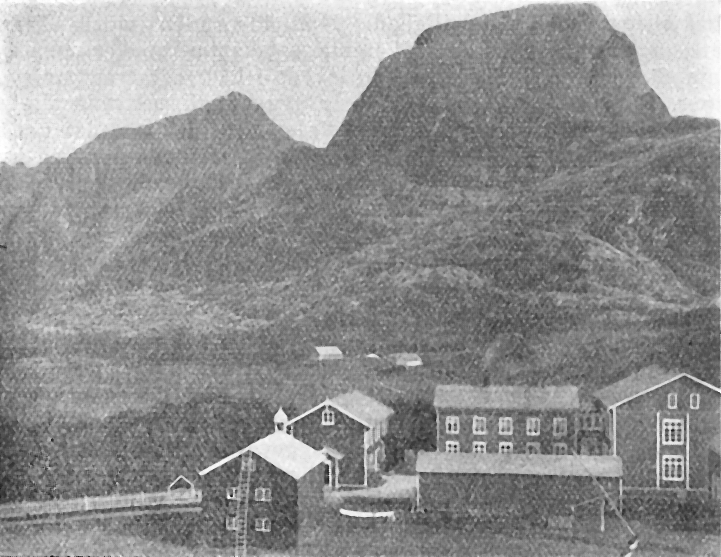 Det var et trivelig og pent bygningskompleks som var opført paa Søvik ; røde toetages træbygninger med hvite kanter og vinduer – arrangert saa de dannet en firkantet og derved lun gaardsplass. (…)