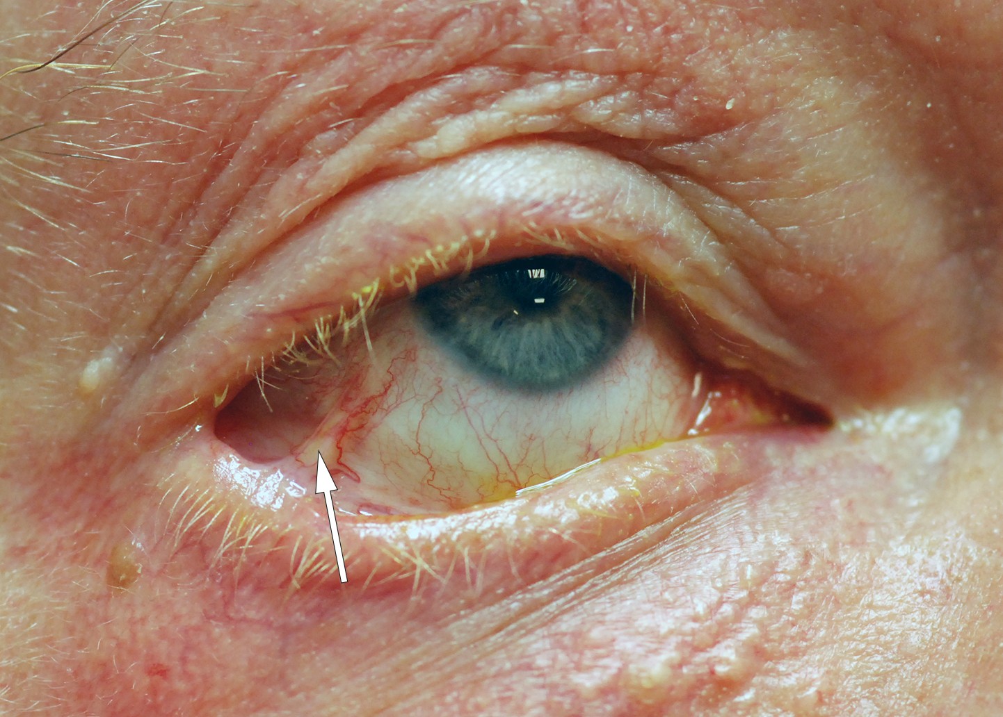 Øre-nese-hals-lege forordnet nystatin mikstur og kort prednisolonkur, med liten effekt. Revmatolog fant ikke holdepunkt for bindevevssykdom. Ved dermatologisk vurdering forelå klinisk plasmacellebalanitt. Samtidig var han hos øyelege for tåreveisstenose, blefaritt og ptose. Man påviste konjunktivalstrenger mellom øyelokket og bulbus nedad og oppad høyre øye (bilde 1). Ved kontroll forelå små blemmer på lingvale del av epiglottis (bilde 2 og video).