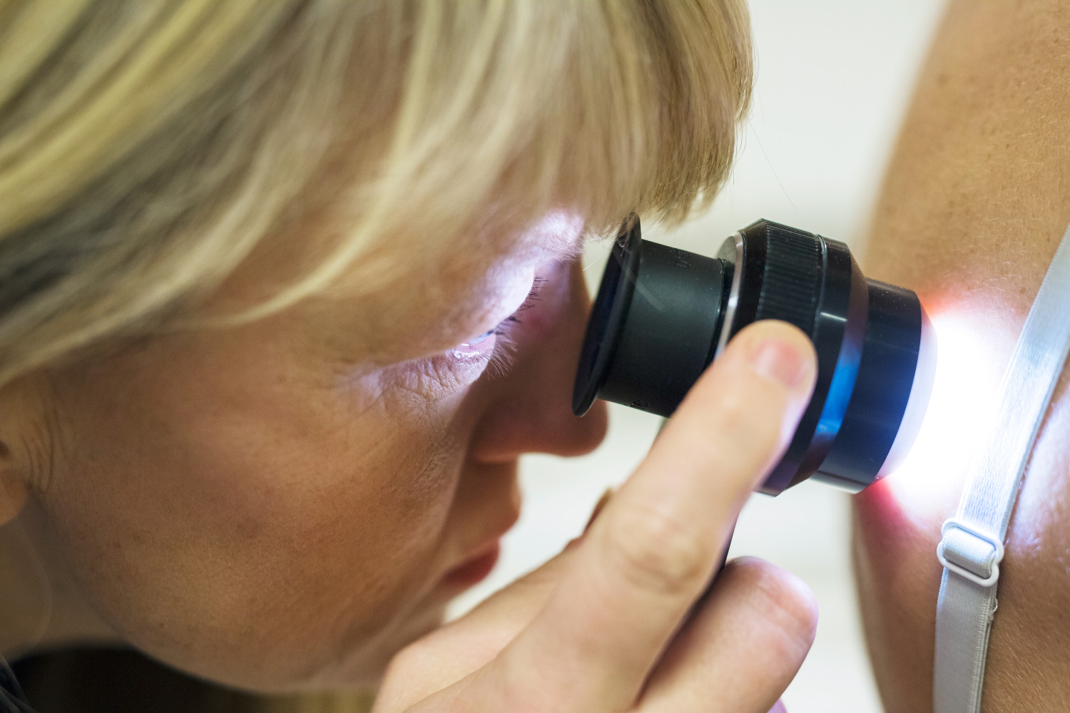 – De siste årene har det kommet mange artikler og mye ny kunnskap rundt dermatoskopi eller dermoskopi. Dermoskopi er internasjonalt foreslått som nytt navn på undersøkelsesmetoden. Et dermatoskop er et slags forstørrelsesglass hudleger bruker til å undersøke pigmenterte lesjoner som føflekker og maligne melanomer. Gjennom dermatoskopet ser man morfologien eller det submakroskopiske bildet man ikke kan se med det blotte øyet. Vi ser farger og strukturer – og ut fra dette tolker vi resultatet.
