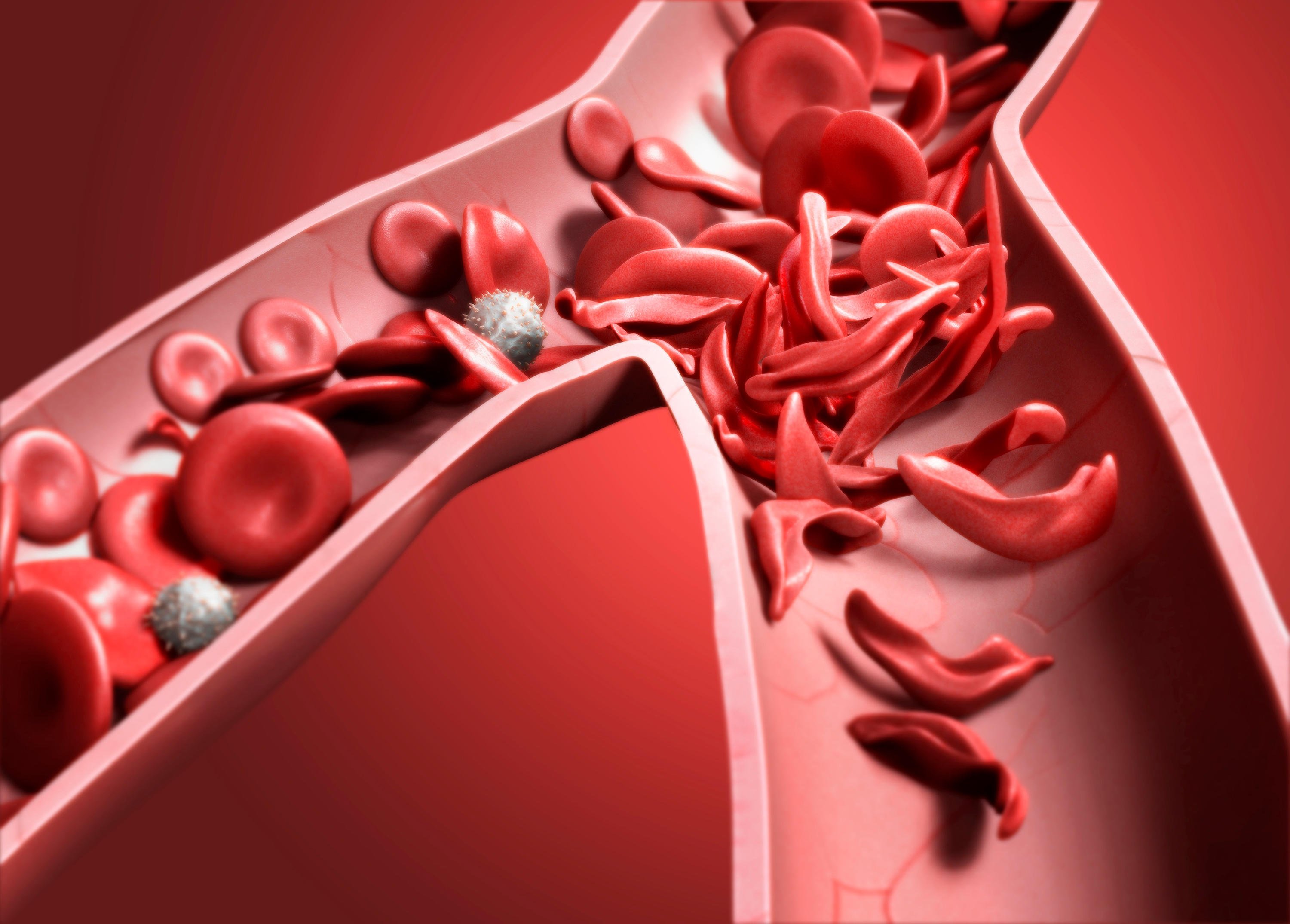 Normale erytrocytter (røde skiver) og erytrocytter påvirket av sigdcelleanemi (halvmåneformet). Sigdceller kan ikke bevege seg gjennom små blodkar like lett som normale celler og kan forårsake blokkeringer. Dette forhindrer oksygen i å nå vevene og kan forårsake alvorlige smerter og organskader. Illustrasjon: Science Photo Library / NTB Scanpix