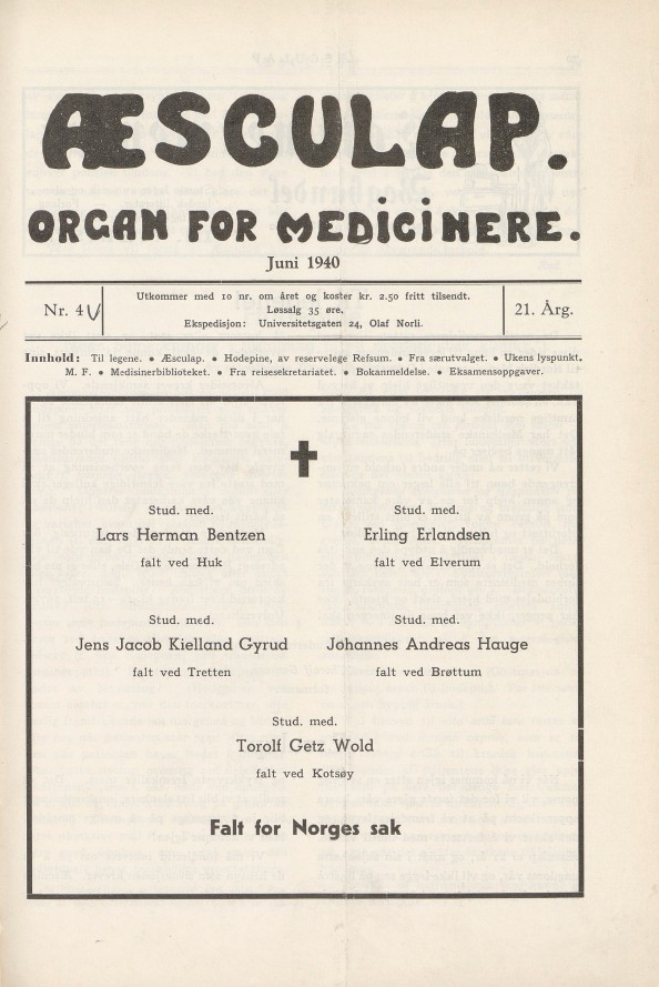Figur 2 Faksimile av Æsculap nr. 4 fra 1940.