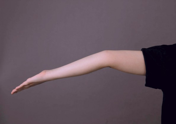 Hyperekstensjon albue er > 10° når armene er utstrakt maksimalt og håndflatene opp (bildet).
