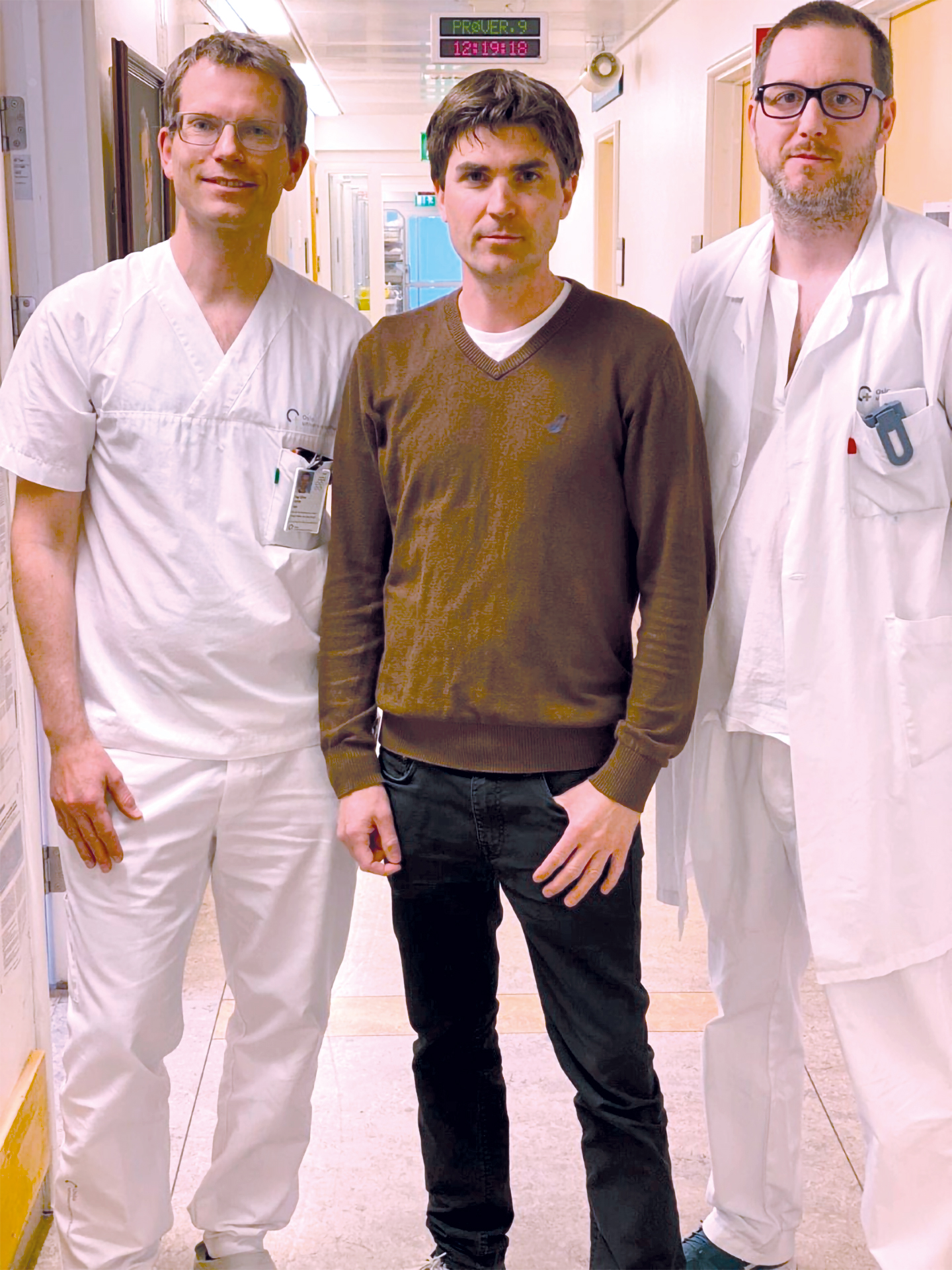 Fra venstre: Medforfatter Dag Olav Dahle, førsteforfatter og stipendiat Anders Haugen og hovedveileder Geir Mjøen. Foto: Sebastian Muller