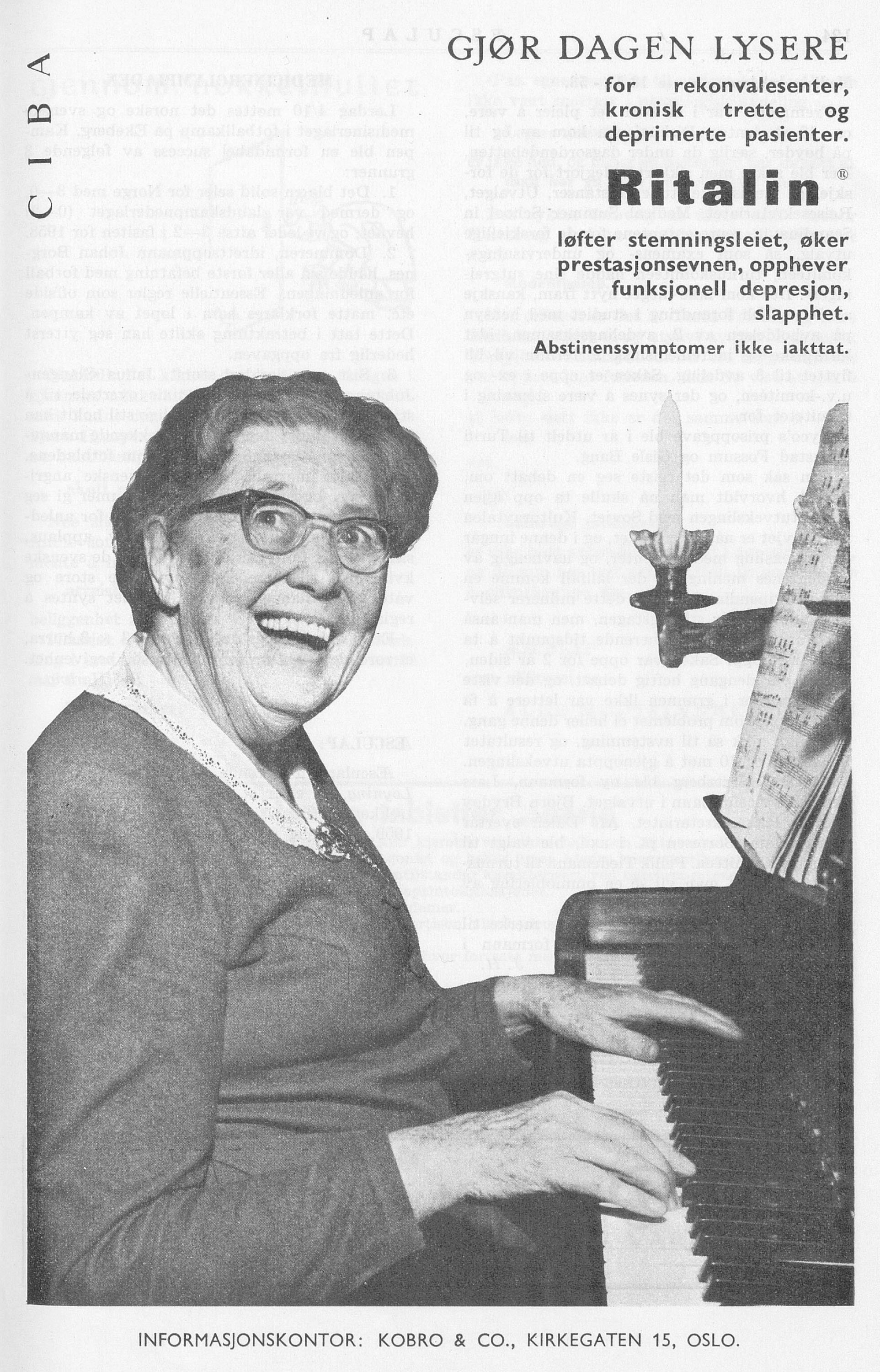Tidligere i Tidsskriftet Gjør dagen lysere! Tidligere i Æsculap Synne Lofstad Om forfatteren Se alle artikler Synne Lofstad synne.lofstad@hotmail.com Redaksjonssjef i Æsculap () sporsmal_grey_rgb Artikkel Ikke helt sjelden står det «trøtt og sliten» bak pasientens navn i timeboka. Hvis det ikke er en åpenbar mangel på vitamin D eller jern, sendes ofte pasienten og fastlegen ut på en tålmodighetsprøve av en leteaksjon. Kanskje det var lettere i 1958, da hadde man i hvert fall én medisin å foreslå? Ritalin ble opprinnelig brukt til å behandle narkolepsi, depresjon og hukommelsesproblemer hos eldre. Det var ikke før i 1960 at preparatet ble brukt til barn med ADHD (Æsculap 1958; 38(8): 123). Kommentarer ( 0 ) Dette kommentarfeltet modereres, men kommentarer blir ikke redaksjonelt behandlet ut over å sikre at de følger retningslinjer for vårt kommentarfelt. Denne artikkelen ble publisert for mer enn 12 måneder siden, og vi har derfor stengt for nye kommentarer. Publisert: 9. november 2020 Utgave 16, 10. november 2020 Tidsskr Nor Legeforen 9. november 2020 Vol. 140. doi: 10.4045/tidsskr.20.0782 PlumX Publisert: 9. november 2020 Utgave 16, 10. november 2020 Tidsskr Nor Legeforen 2020 Vol. 140. doi: 10.4045/tidsskr.20.0782 Plum Print visual indicator of research metrics PlumX Metrics PDF Får du ikke vist PDF-filen eller vil lagre filen, kan du høyreklikke på PDF-ikonet. Velg «Lagre mål/fil som..» og hent så opp PDF-filen i for eksempel Acrobat Reader. Skriv ut Anbefalte artikler