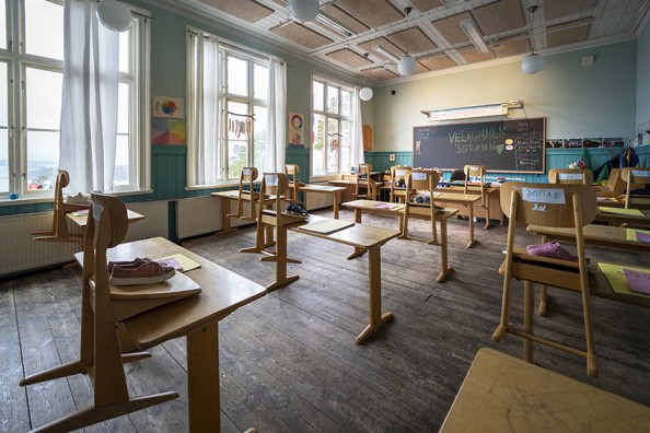 3. klasse-rommet på Nordstrand Steinerskole da skolene åpnet igjen 27. april 2020. Foto: Heiko Junge / NTB