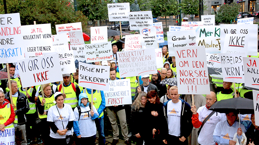 HISTORISK STREIK: Ylf har kjempet mange kamper for sine medlemmer. Her fra sykehusstreiken i 2016 om kollektivt vern. Foto: Legeforeningen.