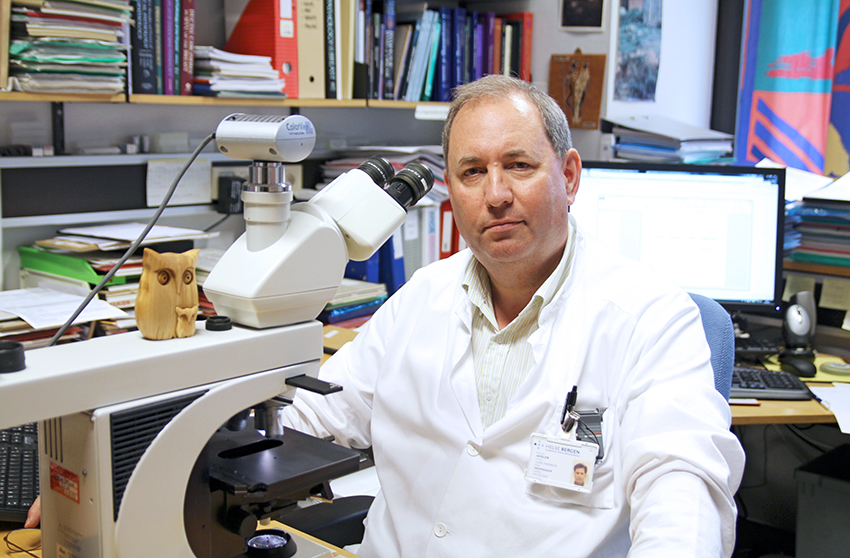 FORSKNINGSBAUTA: Lars A. Akslen er patolog ved Haukeland universitetssjukehus, professor ved Universitetet i Bergen og leder av Centre for Cancer Biomarkers (CCBIO) i Bergen. Foto: Kim Andreassen, UiB