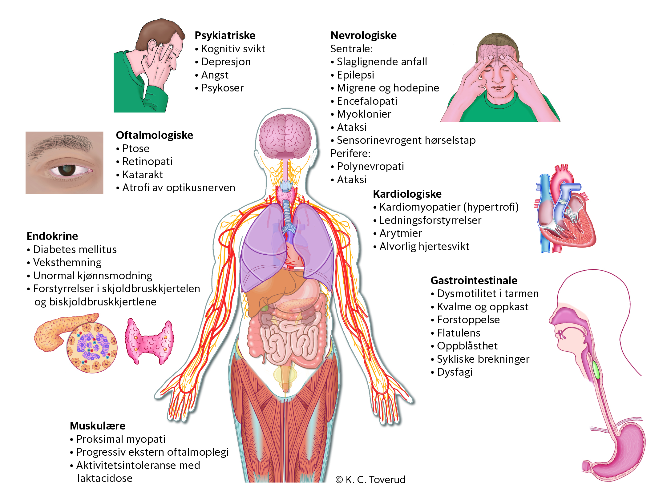 Varhaug og medarbeideres oversikt over mulige kliniske manifestasjoner og behandling av den vanligste mutasjonen som gir mitokondriesykdom, tar for seg nevrologiske, gastroenterologiske, kardiologiske, endokrine samt oftalmologiske og hørselsrelaterte symptomer (1). Som forfatterne anfører er det imidlertid ikke alle pasienter med m.3243A>G som presenterer de somatiske symptomer som omtales. Hos noen kan det kliniske bildet primært være psykiatrisk (2), hvilket medfører at pasienten kan innlegges i en psykiatrisk akuttavdeling. Dessuten er m.3243A>G bare er en av flere andre mitokondriemutasjoner som kan være avgjørende for utløsning av en psykiatrisk tilstand (3).