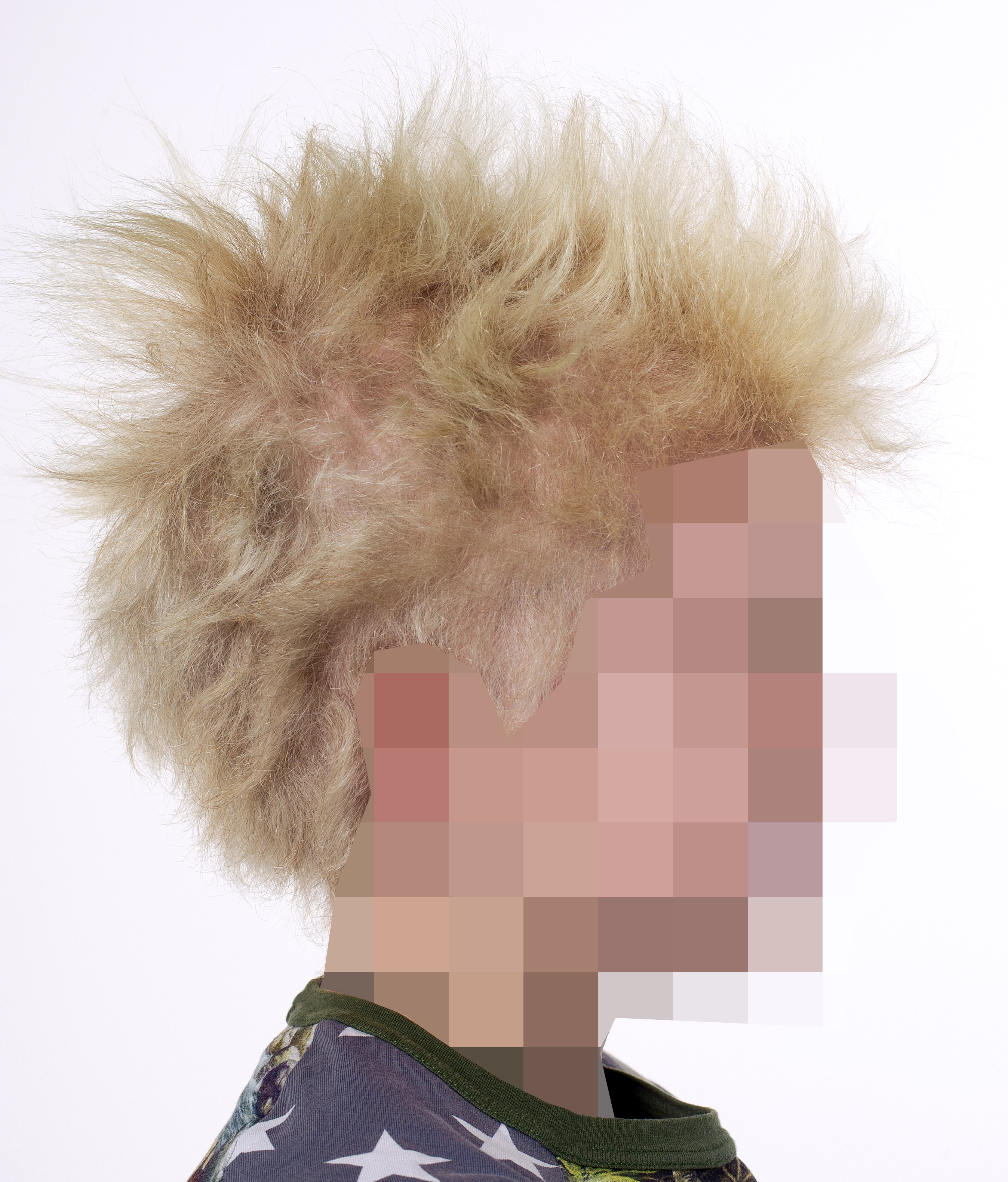 Bildet viser en gutt med et krusete og viltert hår. Elektronmikroskopiundersøkelse viser et trekantet hårstrå med kanallignende fordypning langs hårskaftet ved ugreelig hår-syndrom.