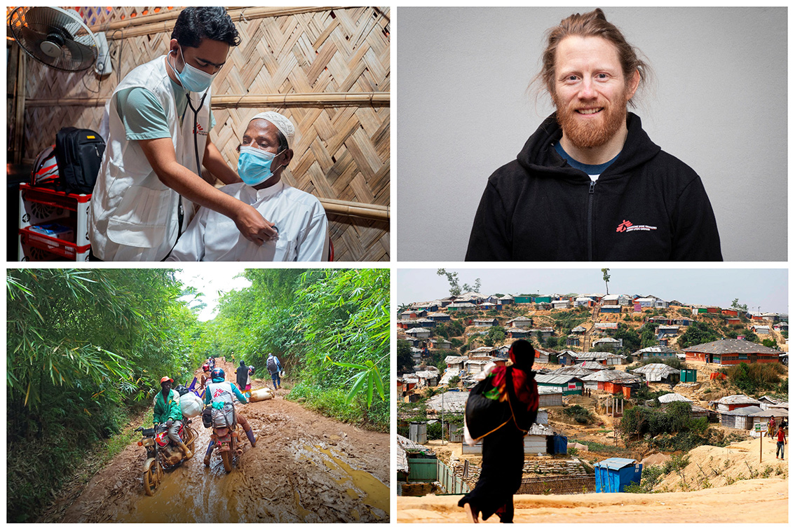 Erlend Grønningen (bildet øverst til høyre), president i Leger Uten Grenser, mener det er viktig å sette søkelys på de glemte krisene. Situasjonen i Bangladesh (øverst til venstre), Den demokratiske republikken Kongo (nederst til venstre) og Sierra Leone (nederst til høyre) er eksempler på kriser som er glemt. Foto: Leger Uten Grenser