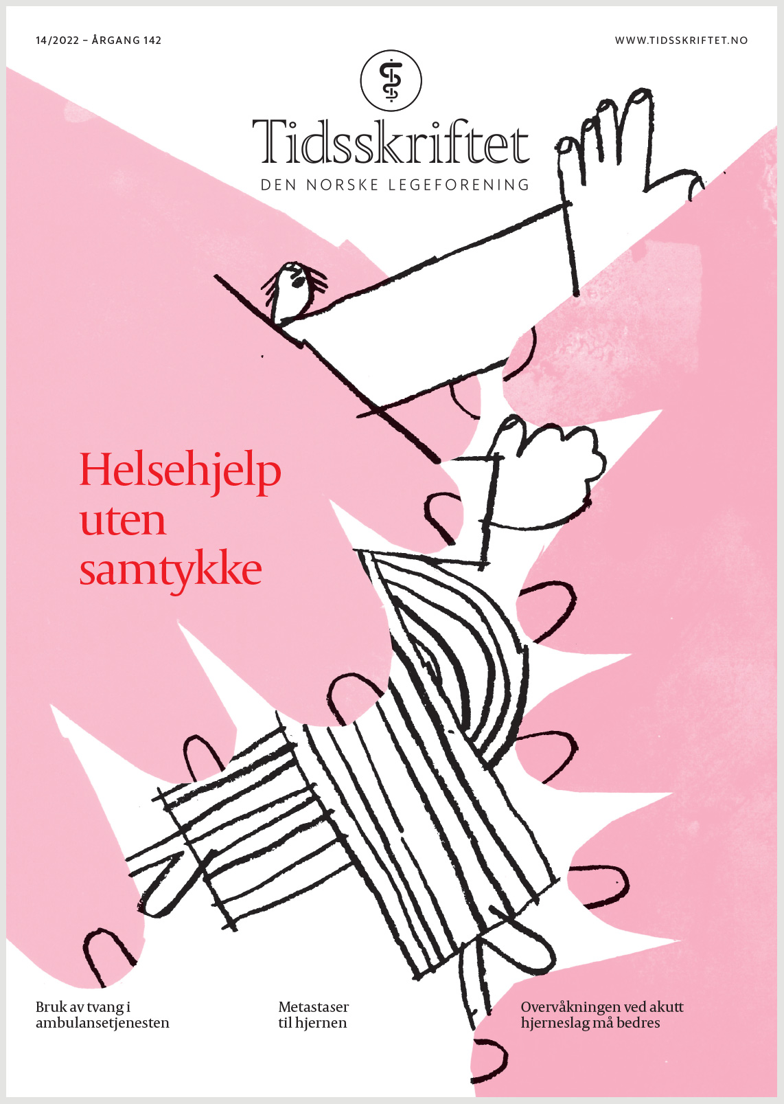 Forside Forside nr. 14/2022 () sporsmal_grey_rgb Artikkel Illustrasjon: Maria Midttun Som helsepersonell ønsker vi og skal vi gi omsorg til syke mennesker. Men av og til må en hjelpende hånd også holde fast. I dette nummeret av Tidsskriftet kan du lese at ambulansepersonell av og til må gi helsehjelp selv om pasienter motsetter seg det. Da kan det oppstå vanskelige situasjoner, også fordi man i prehospital tjeneste ikke har et entydig regelverk for håndtering av utagerende pasienter. Forsiden er laget av illustratør Maria Midttun. Flere av hennes arbeider kan du se på http://www.mariamidttun.com og på Instagram: @mariamidttun. Relaterte artikler Leger, tvang og juss Bruk av tvang under ambulansetransport Kommentarer ( 0 ) Dette kommentarfeltet modereres, men kommentarer blir ikke redaksjonelt behandlet ut over å sikre at de følger retningslinjer for vårt kommentarfelt. Denne artikkelen ble publisert for mer enn 12 måneder siden, og vi har derfor stengt for nye kommentarer. Publisert: 10. oktober 2022 Utgave 14, 11. oktober 2022 Tidsskr Nor Legeforen 10. oktober 2022 Vol. 142. doi: 10.4045/tidsskr.22.14.02 PlumX Publisert: 10. oktober 2022 Utgave 14, 11. oktober 2022 Tidsskr Nor Legeforen 2022 Vol. 142. doi: 10.4045/tidsskr.22.14.02 Plum Print visual indicator of research metrics PlumX Metrics PDF Får du ikke vist PDF-filen eller vil lagre filen, kan du høyreklikke på PDF-ikonet. Velg «Lagre mål/fil som..» og hent så opp PDF-filen i for eksempel Acrobat Reader. Skriv ut Anbefalte artikler