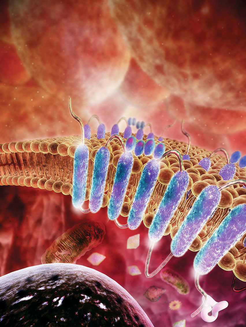 Plasmamembran med G-proteinkoblede reseptorer. Digital illustrasjon: Science Photo Library / NTB