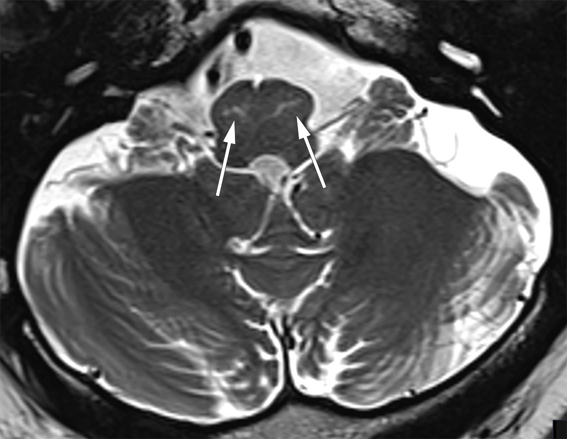 En tidligere frisk mann i slutten av 50-årene ble henvist til nevrologisk vurdering på bakgrunn av tilfeldig funn ved cerebral MR som ledd i utredning av en ikke-relatert øyesykdom. MR-undersøkelsen viste T2-høysignal i hjernestammen svarende til nucleus olivaris inferior bilateralt uten kontrastopptak eller masseeffekt. Pasienten hadde ved undersøkelsen kontinuerlig palatal tremor, men ingen andre nevrologiske symptomer eller tegn.