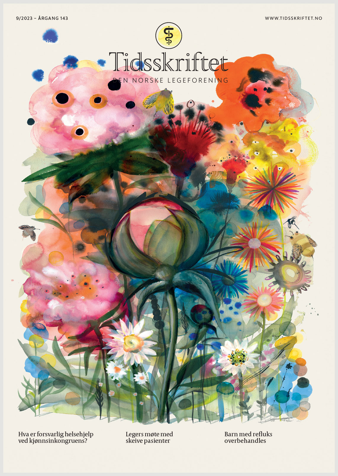 Forside Forside nr. 9/2023 () sporsmal_grey_rgb Artikkel Illustrasjon: Hilde Thomsen Å komme ut som skeiv kan fortsatt være vanskelig. I juni feirer vi Pride og kjønns- og seksualitetsmangfold – og står sammen mot fordommer og diskriminering. Forsideillustrasjonen ble produsert i stort format med rikelig vann, akvarellfarge og blekk. «Midt i den bugnende buketten står en peonknopp. Den er ikke ferdig utsprunget og strekker seg forventningsfullt mot solen», forklarer illustratør Hilde Thomsen. Flere av hennes arbeider kan du se på hildethomsen.no og på Instagram (@hilde_thomsen). Relaterte artikler Hvordan møte unge skeive Hva er faglig forsvarlig og omsorgsfull helsehjelp til barn og unge med kjønnsdysfori? Pride handler om å kunne være seg selv! Kommentarer ( 0 ) Dette kommentarfeltet modereres, men kommentarer blir ikke redaksjonelt behandlet ut over å sikre at de følger retningslinjer for vårt kommentarfelt. Denne artikkelen ble publisert for mer enn 12 måneder siden, og vi har derfor stengt for nye kommentarer. Publisert: 12. juni 2023 Utgave 9, 13. juni 2023 Tidsskr Nor Legeforen 12. juni 2023 Vol. 143. doi: 10.4045/tidsskr.23.09.02 PlumX Publisert: 12. juni 2023 Utgave 9, 13. juni 2023 Tidsskr Nor Legeforen 2023 Vol. 143. doi: 10.4045/tidsskr.23.09.02 Plum Print visual indicator of research metrics PlumX Metrics PDF Får du ikke vist PDF-filen eller vil lagre filen, kan du høyreklikke på PDF-ikonet. Velg «Lagre mål/fil som..» og hent så opp PDF-filen i for eksempel Acrobat Reader. Skriv ut Anbefalte artikler