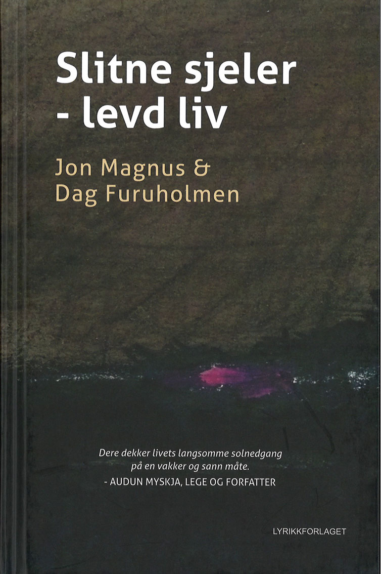 Slitne sjeler – levd liv er en sterk og malende tittel som beskriver innholdet i boken godt. De to forfatterne er jevngamle og nære venner. Jon har vært utenriksreporter og Dag har vært psykiater. De har på hver sin måte møtt vegger i egne liv. Jon har vært søvnløs og utmattet etter stort og til dels svært belastende arbeidspress, Dag har fått kreft. Begge har de brukt dikt som selvterapi og gjensidig dokumentasjon. Denne boken er resultatet.