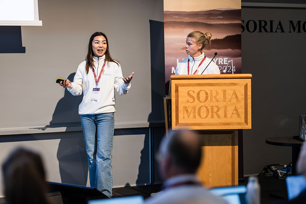 GIVERGLEDE: Anna Yang Arntzen (t.v) sammen med nestleder i MedHum Vilde Hustad ble rørt over landsstyrets giverglede. Foto: Legeforeningen/Thomas B. Eckhoff