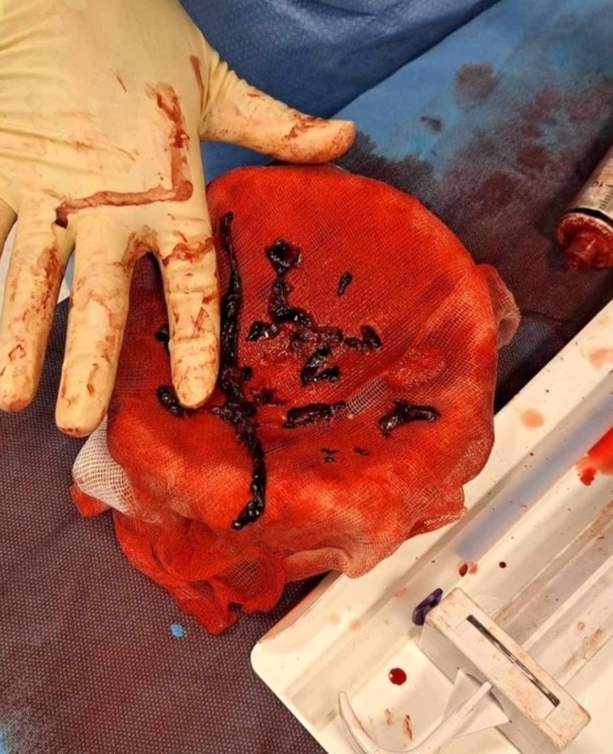Det ble anslått et blodtap på til sammen 50–80 ml. Pasientens systemiske trykk steg umiddelbart etter trombeaspirasjonene, og man kunne trappe ned pressorbehandlingen. Vasopressin ble seponert og noradrenalininfusjonen redusert til 0,02 µg/kg/min. Objektivt og subjektivt observert dyspné bedret seg raskt. Ved avslutning av prosedyren ble middeltrykket i truncus pulmonalis målt til 19–20 mmHg. Angiografi viste akseptabel og rask fylling i de største segmentene i lungene på begge sider.