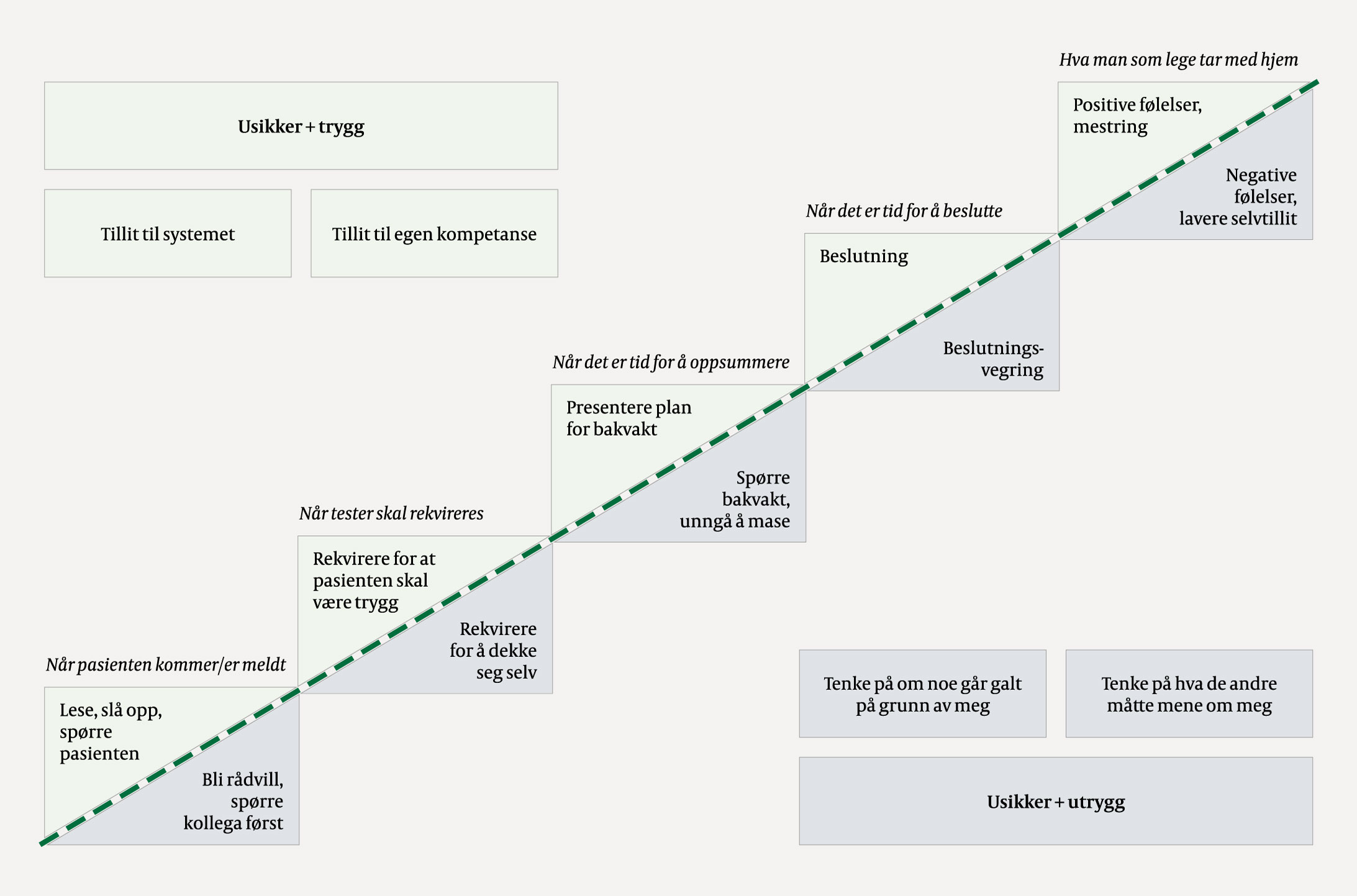 'Yes, maybe too often... I've sometimes thought... that it had... yes, that I've become a little more effective by trusting myself a bit more when I think that it's probably right. And then I get an urge to just double-check... I think of the big responsibility I have for the patients, that maybe I'm the only one they actually see, at least in the beginning. And that the sense of responsibility is so great that I would rather seem a bit stupid and be a bit embarrassed than be uncertain of whether I've done something right or wrong.' (Doctor 10)